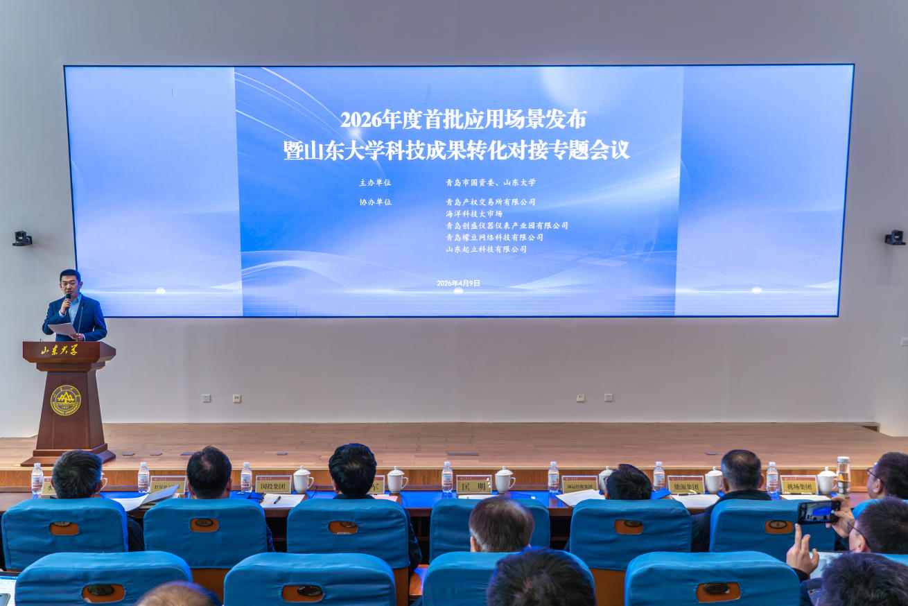 4月9日下午,由山东大学与青岛市国资委联合举办的“2026年度首批应用场景发布暨山东大学科技成果转化对接专题会议”在山东大学青岛校区举行。山东大学校长助理、青岛校区党工委书记邢占军,青岛市国资委党委委员、副主任匡明出席活动。